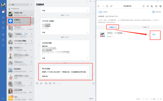 趕上618、雙十一等大促節日,管理員設置推送任務較多時,員工有時會忘了哪些事項已做,哪些未做,這時候他們只要打開“艾客助手”,就可以看到群任務提醒,清晰查看到“待推送”和“已推送”任務,及時跟進,避免漏發信息。