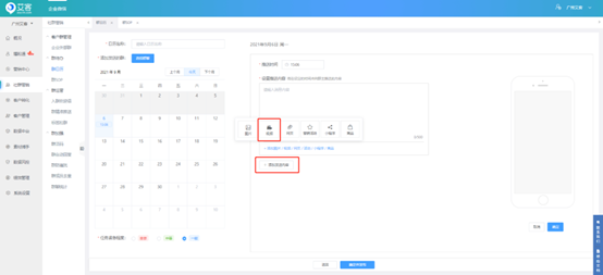 管理員不僅可以利用【艾客SCRM】制定SOP,每日準時提醒員工進行內容推送,還可以將本周、本月的工作安排一早設置在【群日歷】中,讓員工的工作安排一目了然。同時管理員還可以在群日歷中給對應的群添加日歷任務,到達指定時間后系統將自動通知對應的員工去執行對應的任務。