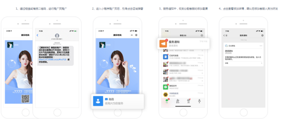 2.新增小程序加粉推廣短鏈,該短鏈可應用于短信、今日頭條、抖音等可以進行短鏈投放的場景;用戶點擊短鏈直接進入微信的小程序推廣頁,頁面上可引導客戶主動添加企業員工。