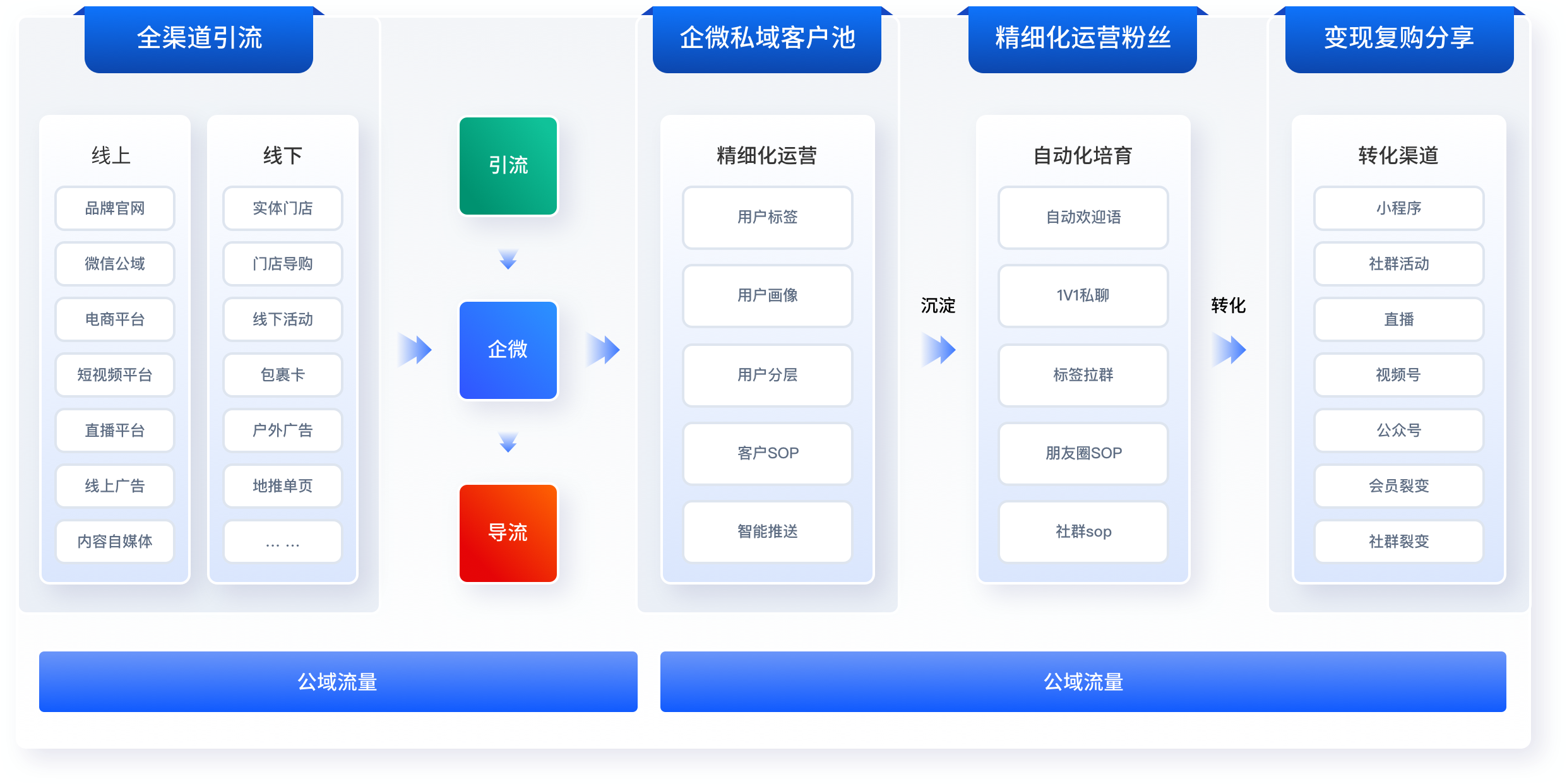 提供全渠道的私域流量運營管理工具,包含但不限于企微SCRM、外呼、微信公眾平臺系統