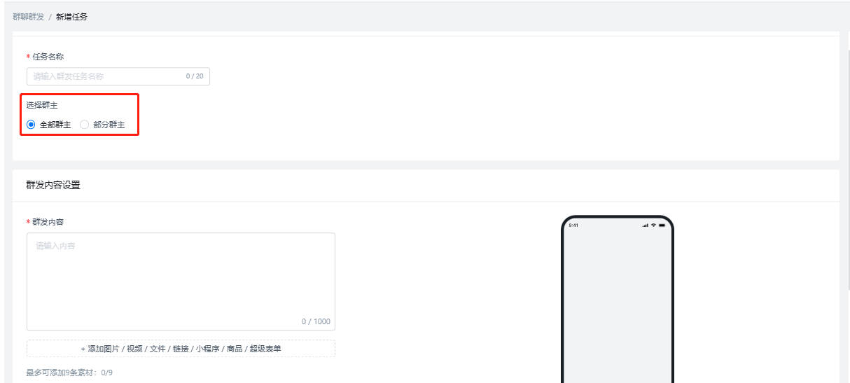 與私聊群發(fā)類似,選擇群主,添加素材即可實現(xiàn)群群發(fā)