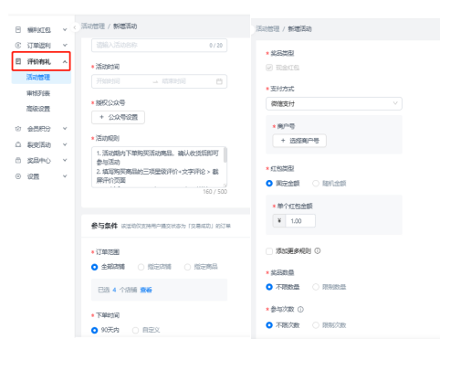 評價有禮:商家可使用評價有禮實現(xiàn)獲得好評,提高店鋪權(quán)重等業(yè)務(wù)需求,幫助商家提高店鋪美譽,促進成交