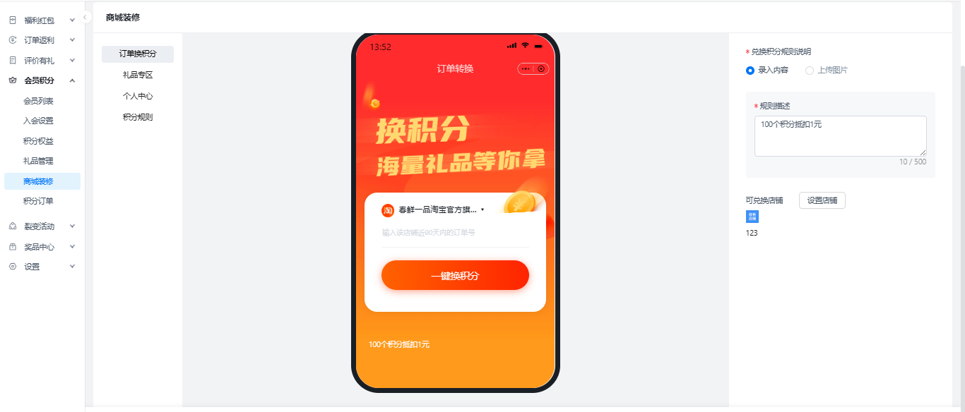 最常見的權(quán)益則是會員積分體系,艾客有專門的積分板塊可以打通公域的訂單,將公域訂單傳輸?shù)桨偷闹腔墼频辏斂蛻魠⑴c訂單換積分的時候就能抓取智慧云店的訂單,實現(xiàn)積分兌換,同時積分商城還可以讓客戶自主兌換各種禮品
