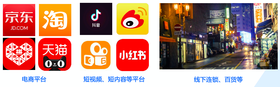 首先,先盤點好電商平臺(京東、淘寶、拼多多、天貓)、短視頻短內容平臺(抖音、微博、快手、小紅書)、線下連鎖和百貨等所有流量入口。