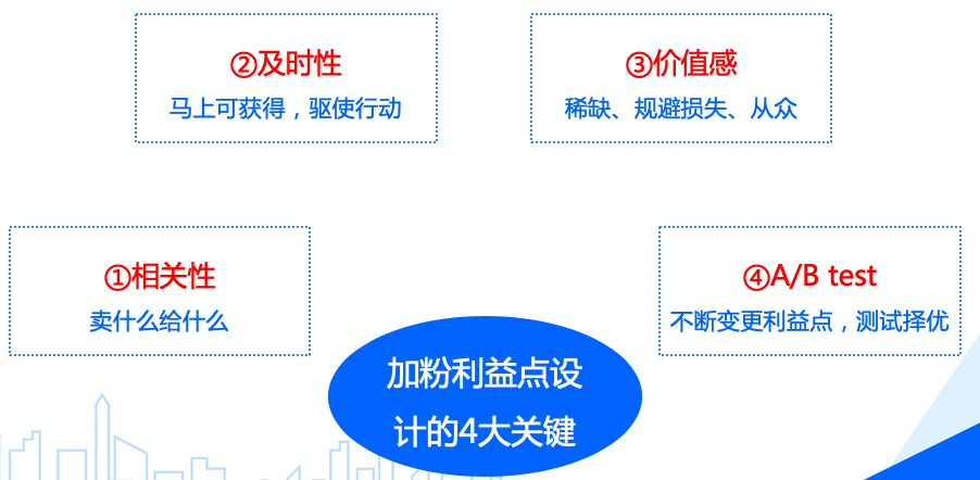 根據加粉策略,設置不同利益點,同時也要不斷迭代策略,加粉利益點設計主要有這4大關鍵: