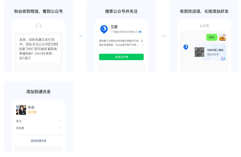 淘寶站內(nèi)短信可觸達(dá)下單用戶,可通過文字引導(dǎo)用戶關(guān)注公眾號再添加企微。