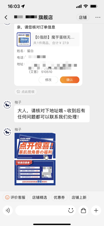 2、推送節點:①咨詢后,購買前;②購買后,發貨前