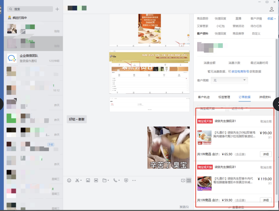(3)用戶添加到企業微信之后:引導回復訂單號,在系統上綁定訂單號后,消費者后期購買產品,在后臺都可以看得到相關訂單;