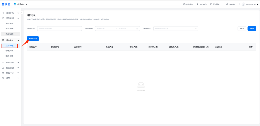 圖1:工具路徑:艾客SCRM-營銷寶-評價有禮