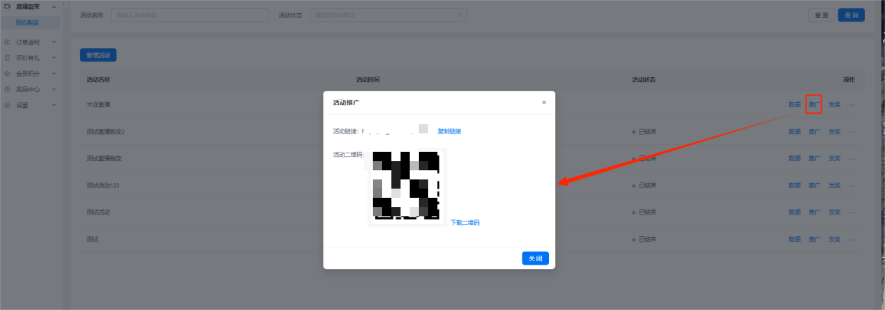 設置用戶參與視頻號直播預約裂變活動需邀請好友數量及獎品,好友預約直播即可助力成功。創建活動后艾客后臺生成短鏈及二維碼,可向私域用戶進行推廣。