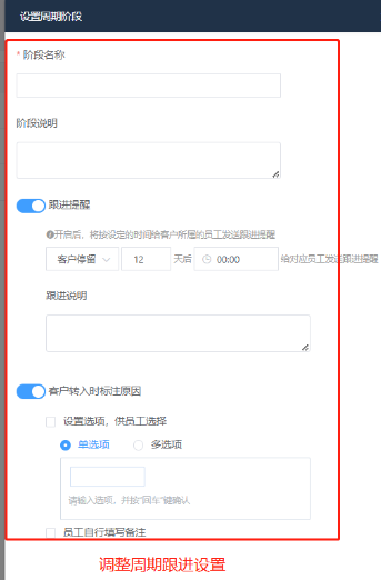 轉(zhuǎn)入原因:設置后,員工將客戶添加至該階段,需選擇或填寫轉(zhuǎn)入原因。