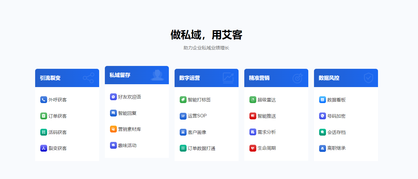 除了方便企業(yè)管理客戶,企業(yè)微信在客戶運營上也有不少功能,不過企微提供的功能還很基礎,已經(jīng)滿足不了許多企業(yè)的運營需求,這時候可以使用企業(yè)微信營銷管理系統(tǒng),在這里特別推薦艾客scrm系統(tǒng),艾客基于企業(yè)微信開發(fā)了眾多的企微輔助工具,構建從引流獲客、客戶運營、營銷轉(zhuǎn)化、數(shù)據(jù)風控等全方位打造私域營銷閉環(huán),幫助企業(yè)更多進行企業(yè)微信營銷,更好做好客戶關系管理。