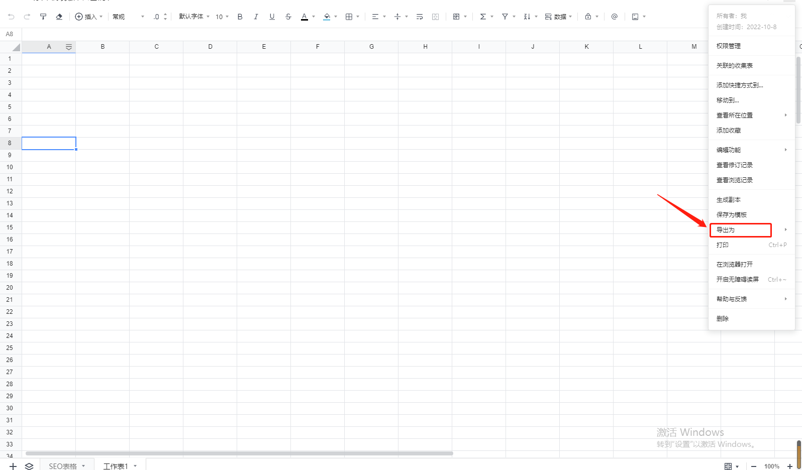 直接打開在線文檔,點擊文檔頁面右上角,選擇導出,在選擇需要保存的電腦內存位置,即可導出成功。