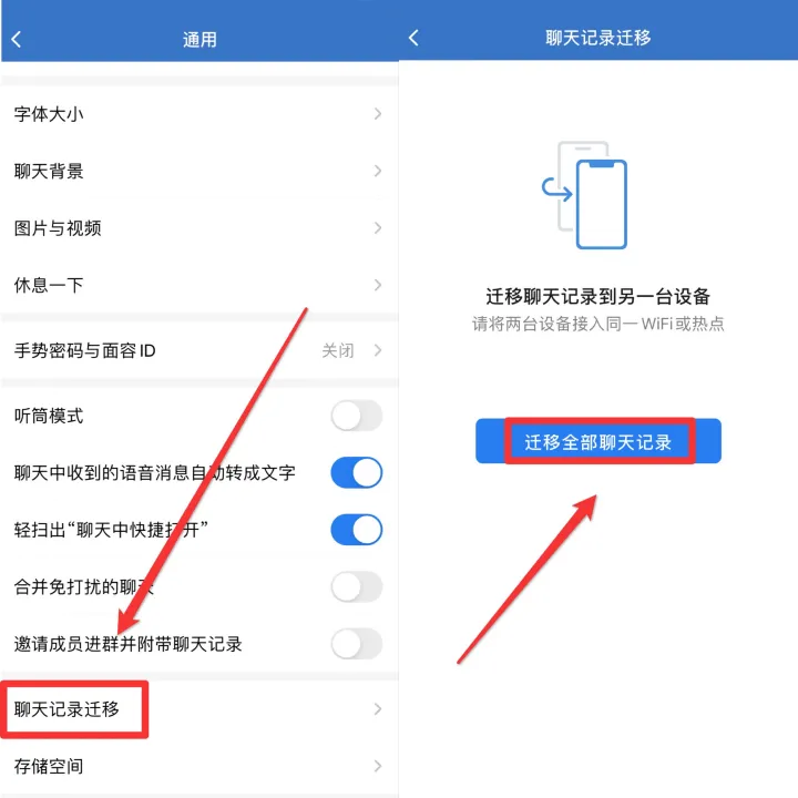 遷移的前提是原設備和新設備需要在同一個網絡/WiFi下,并且新設備可以先在手機內保存好舊設備的企業微信二維碼。