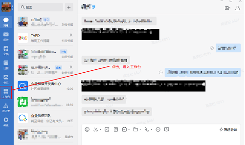 1、在電腦端登錄企業微信,然后點擊進入【工作臺】。