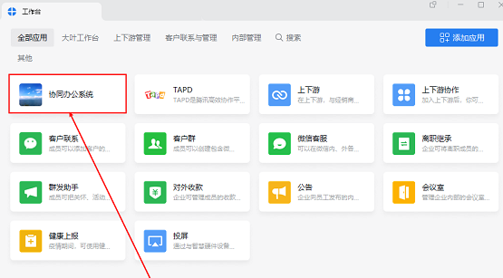 大家要知道企業微信OA系統就是我們日常使用的打卡、審批等功能,這些功能在企微工作臺可以快速找到,具體操作如下: