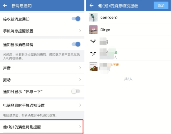 第一種方法是從手機端進入消息通知頁面,只需根據【我】—【設置】—【新消息通知】—【他的消息特別提醒】路徑操作即可,我們能設置需要特別提醒的聯系人。