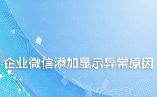 作為一款商務社交工具,企業微信在企業中的應用非常廣泛。然而,一些用戶可能會遇到添加顯示異常的問題,導致無法正常添加新成員。那么,企業微信添加顯示異常是怎么回事?企業微信如何解除加人異常呢?下面跟著艾客SCRM一起來看看吧!