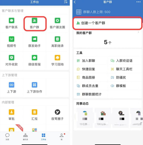 2、群聊是由企業(yè)微信用戶創(chuàng)建的,群聊人數(shù)上限是500人。