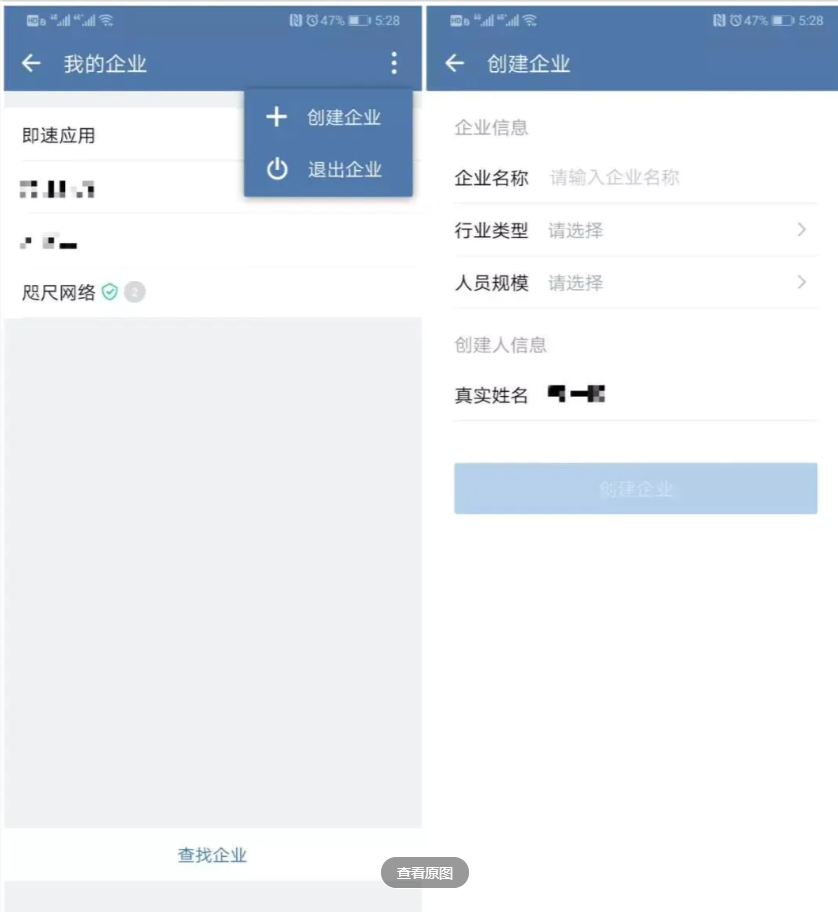 手機注冊:在手機應用商店下載企業微信,點擊立即注冊企業微信,手機端打開企業微信,然后在頁面的右下角點擊“我的”,最后一行選擇“設置”,然后點擊“切換身份”,選擇“創建企業”。